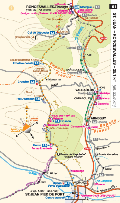 What do I mean? Well let’s start with cartographic maps, which we take as a default. These have three common characteristics. Firstly, they are usually orientated with north at the top of the page, second they are usually to a fixed scale (e.g. 1cm = 1km), and third they are comprehensive (e.g. they include every road). Although we take these characteristics as a given, they are simply inventions and conventions, and measured by these standards, Brierley’s maps fare poorly. Let’s take the example of his Map No 2 (covering 21.9km between Roncesvalles and Zubiri) and No. 25 (covering 30.6km between Molinaseca and Villafranca). Firstly, the exact same size page, without a scale, is used for covering distances that differ by 8.7km. Secondly, the orientation differs – north in No.2 is at 4 o’clock, but it is at 2 o’clock in No. 25. Thirdly, both maps are blank where a number of small settlements should be inserted. But for a peregrino Brierley’s maps are superior. Why? Because they follow a common medieval principle, they were not conceived of in cartographic terms but rather in hodological terms.